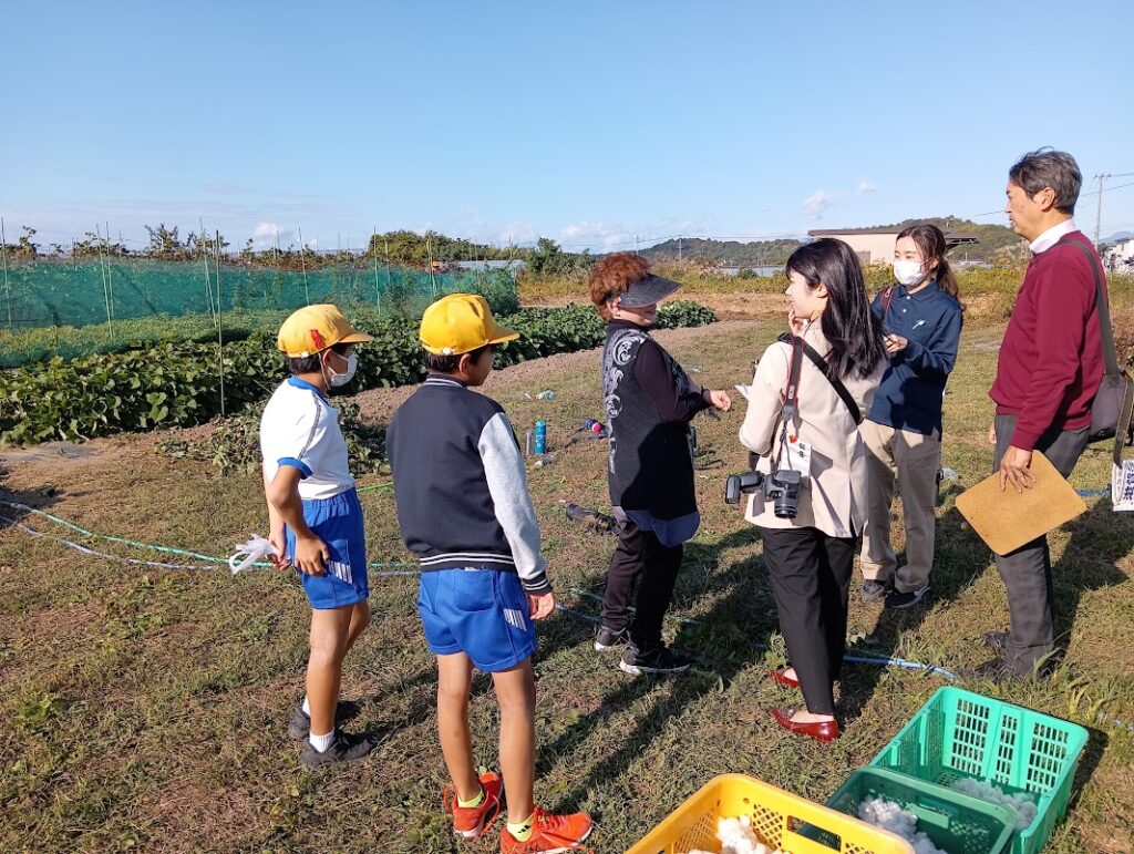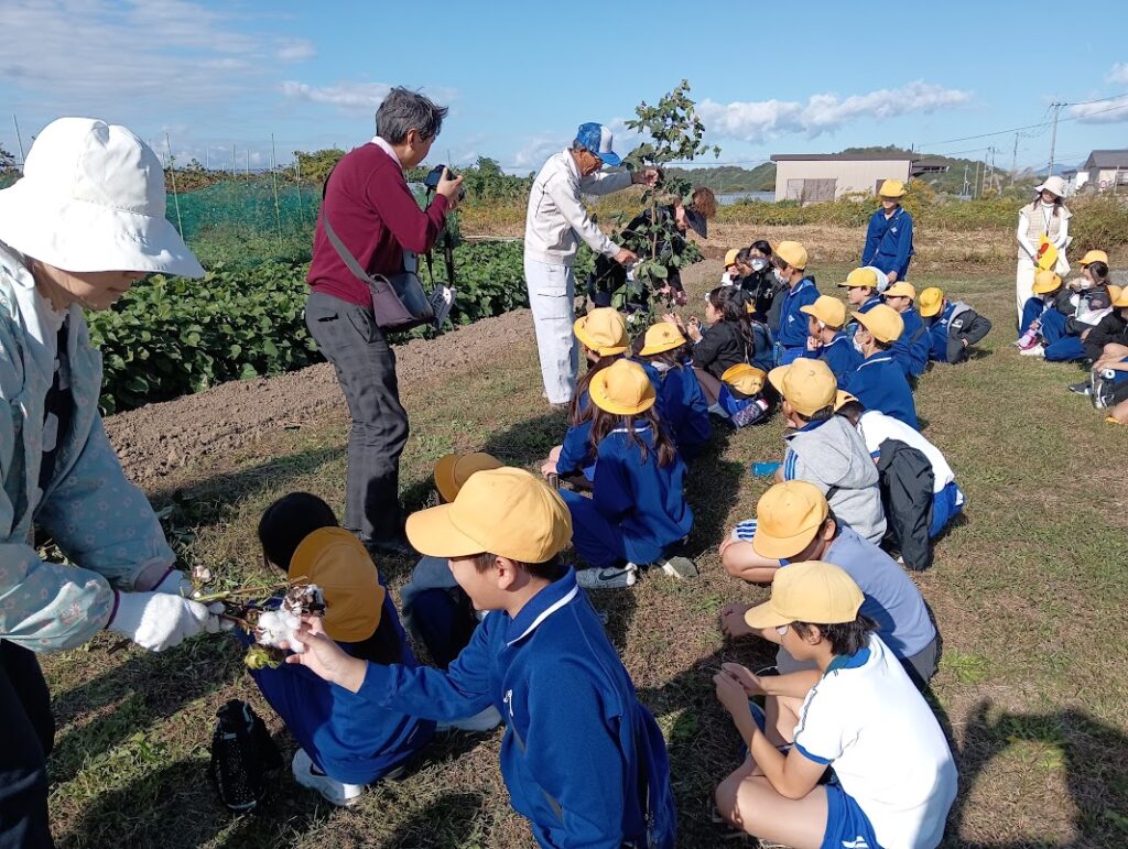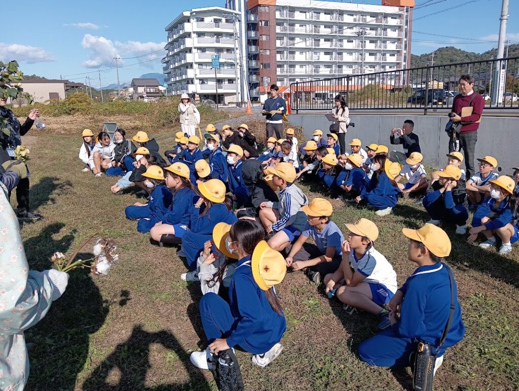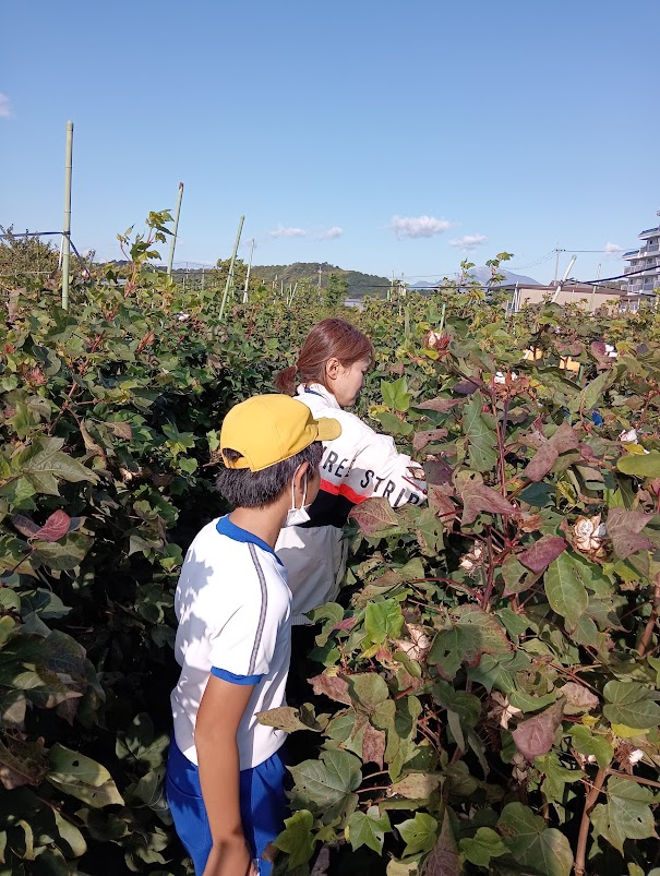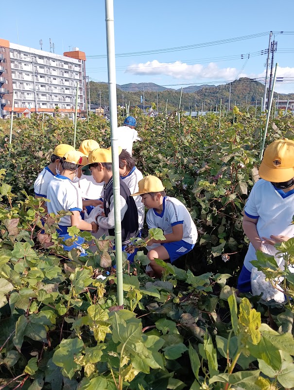 秋晴れのもと『城北小学校5年生の綿摘み体験』を開催しました。きらめき推進会議スタッフより綿花になるまでの過程と棉の摘み方を生徒さんに説明後、背丈を超える程の綿畑に入って綿摘みをしていただきました😄